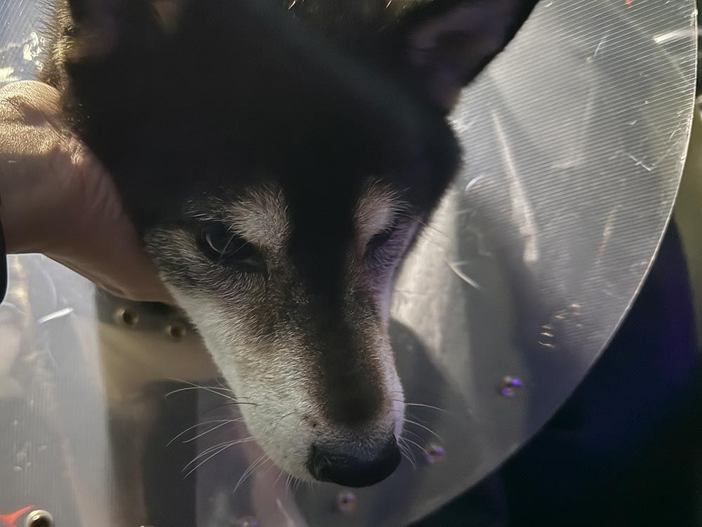 ところが夜中、体のどこが痛いのか確かめようと全身をそっと触っていくと、股関節あたりに触れた瞬間、またも「キャン!」と鳴きました。